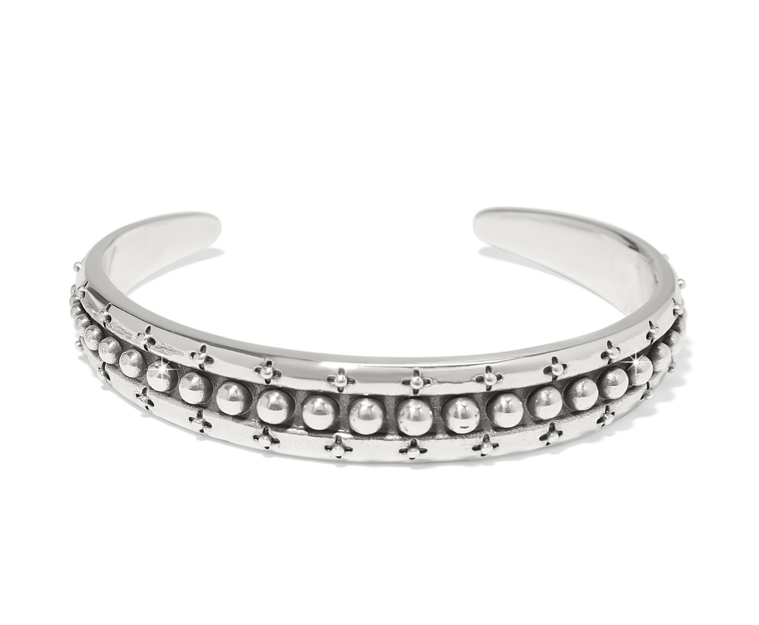 A tapered channel of ball detail with rows of smaller granulation and etching gives this cuff its distinctive southwest vibe.